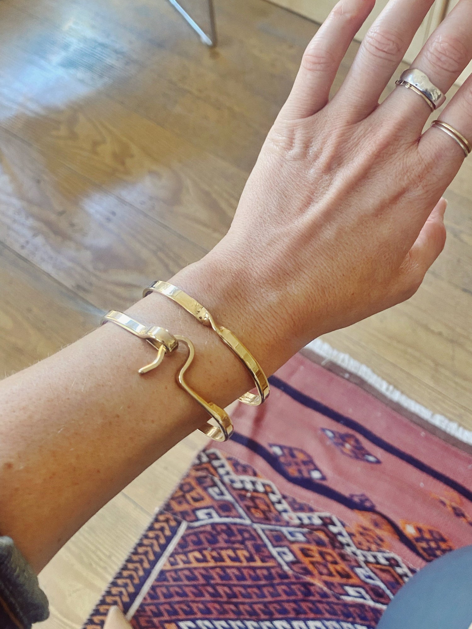 High polished, hand-formed brass bracelet